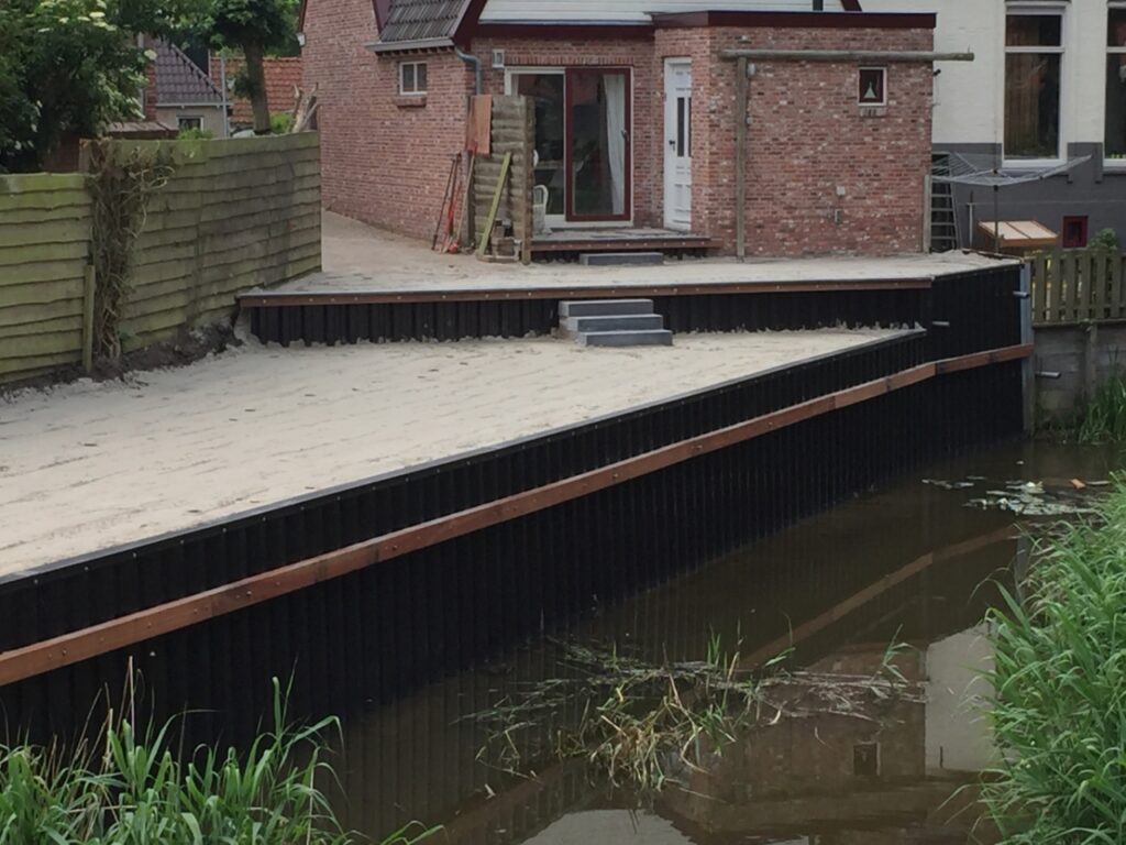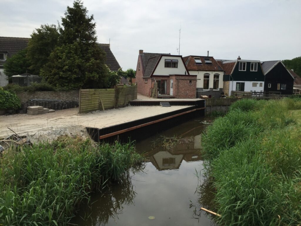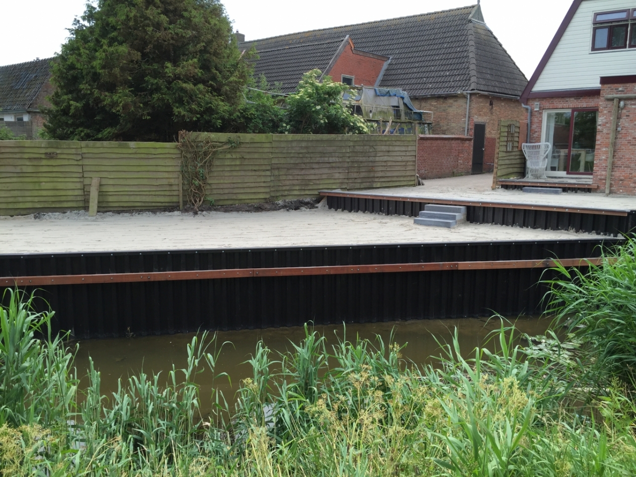 In Marrum hebben we een kunststof walbeschoeiing geplaatst langs de waterkant. De klant had snel de keuze gemaakt voor kunststof, een duurzame oplossing die minimaal 50 jaar meegaat en geen onderhoud nodig heeft.