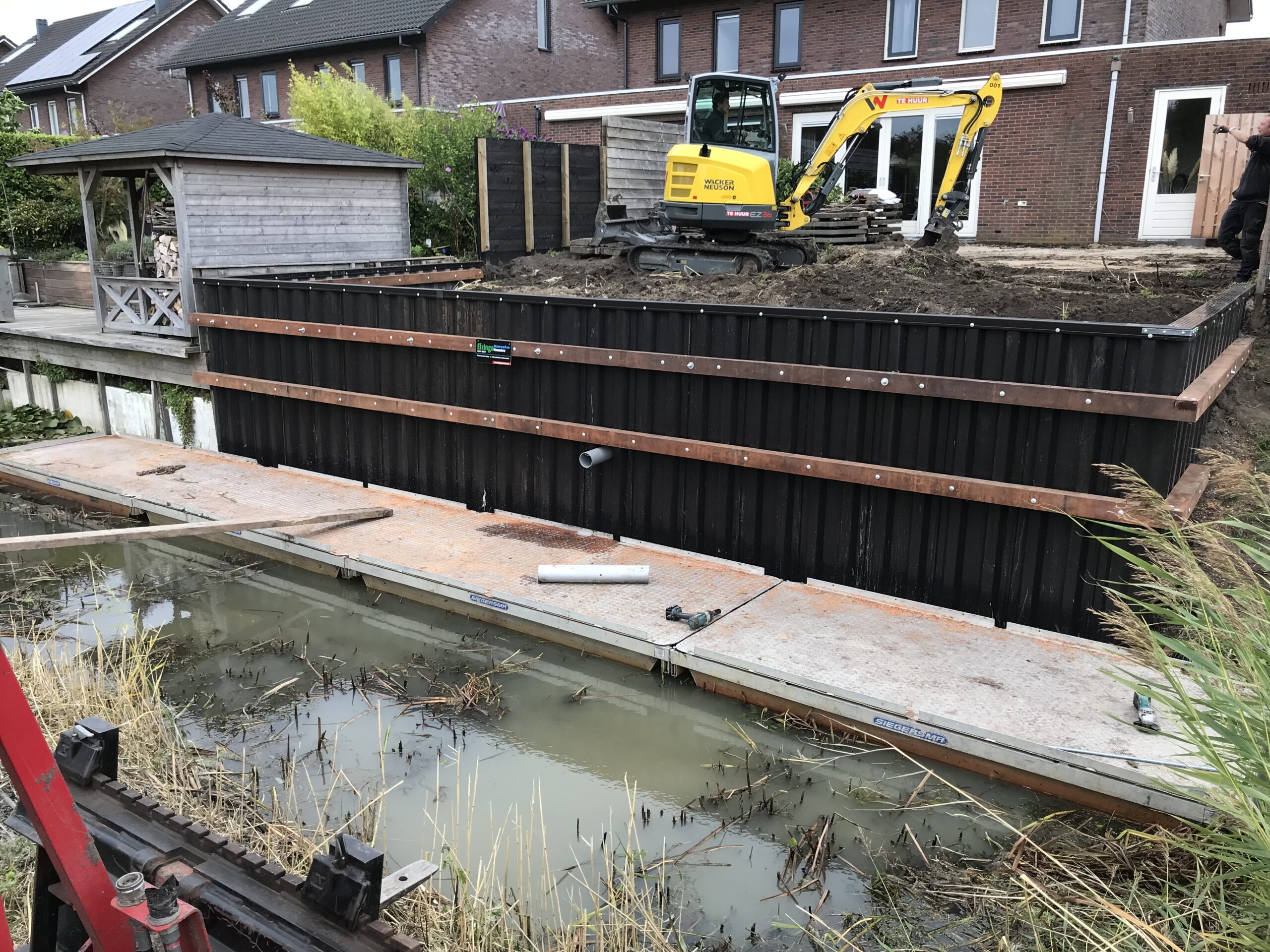In Holwerd hebben we een tuin voorzien van nieuwe kunststof walbeschoeiing van 2,20 meter hoog. De bewoners kozen bewust voor een duurzame kunststof oplossing die jarenlang meegaat zonder onderhoud.