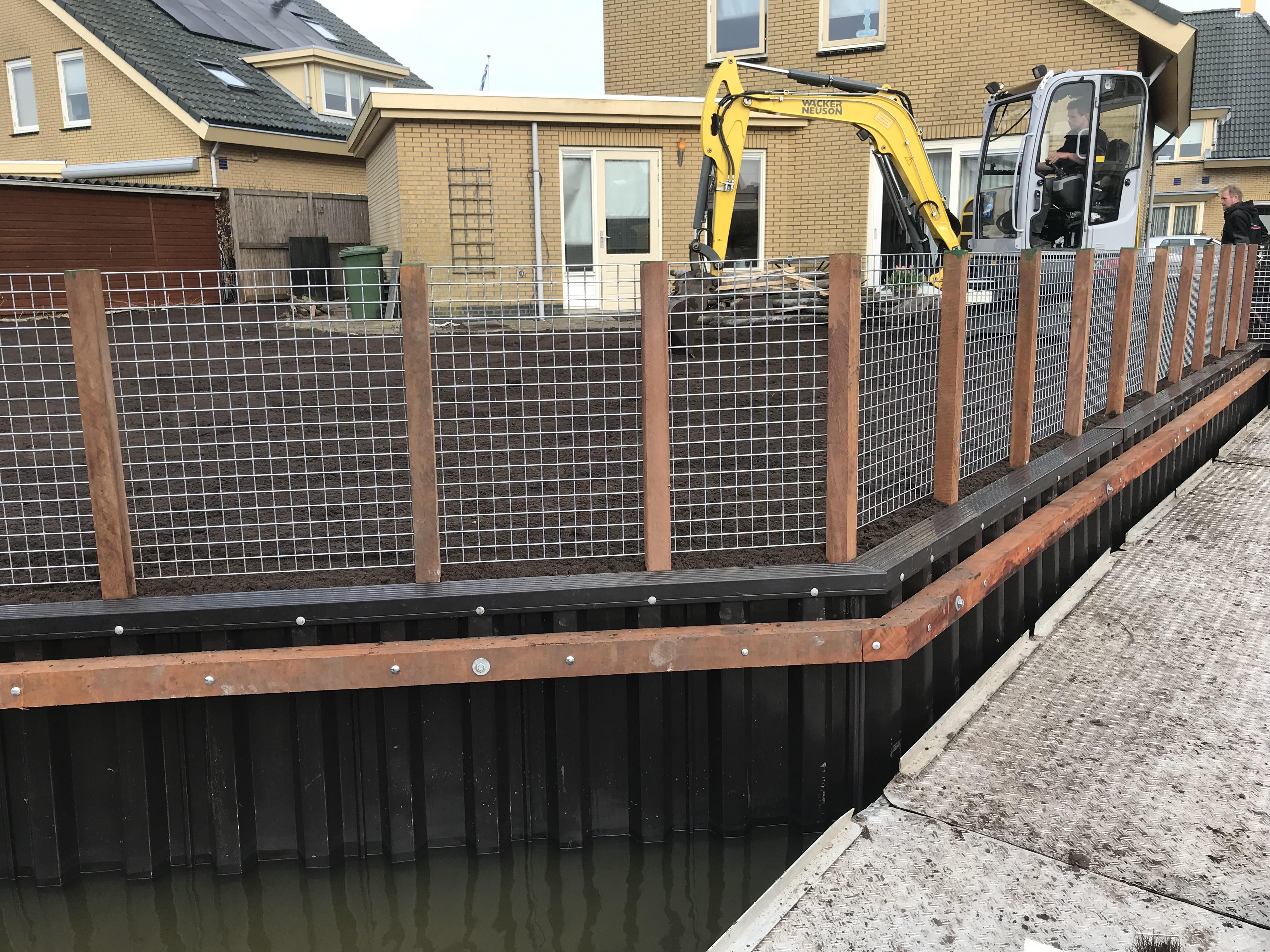 In Bolsward hebben wij een strakke kunststof walbeschoeiing geplaatst, compleet afgewerkt met een stevig hekwerk. Door de combinatie van kunststof en hout ontstaat een duurzaam en onderhoudsarm resultaat dat perfect aansluit bij de tuin. De walbeschoeiing zorgt voor een nette en stabiele waterkant, terwijl het hekwerk extra veiligheid biedt. Deze uitvoering laat goed zien dat functionaliteit en uitstraling uitstekend samen kunnen gaan.