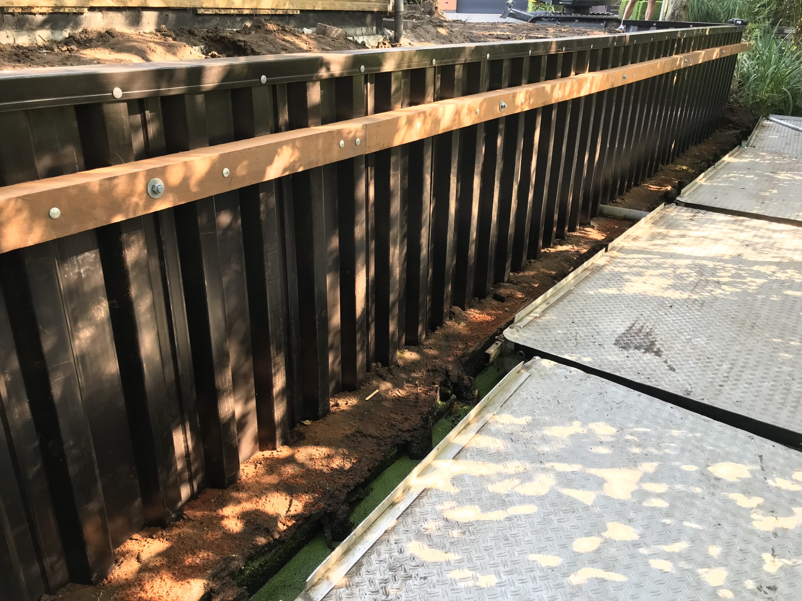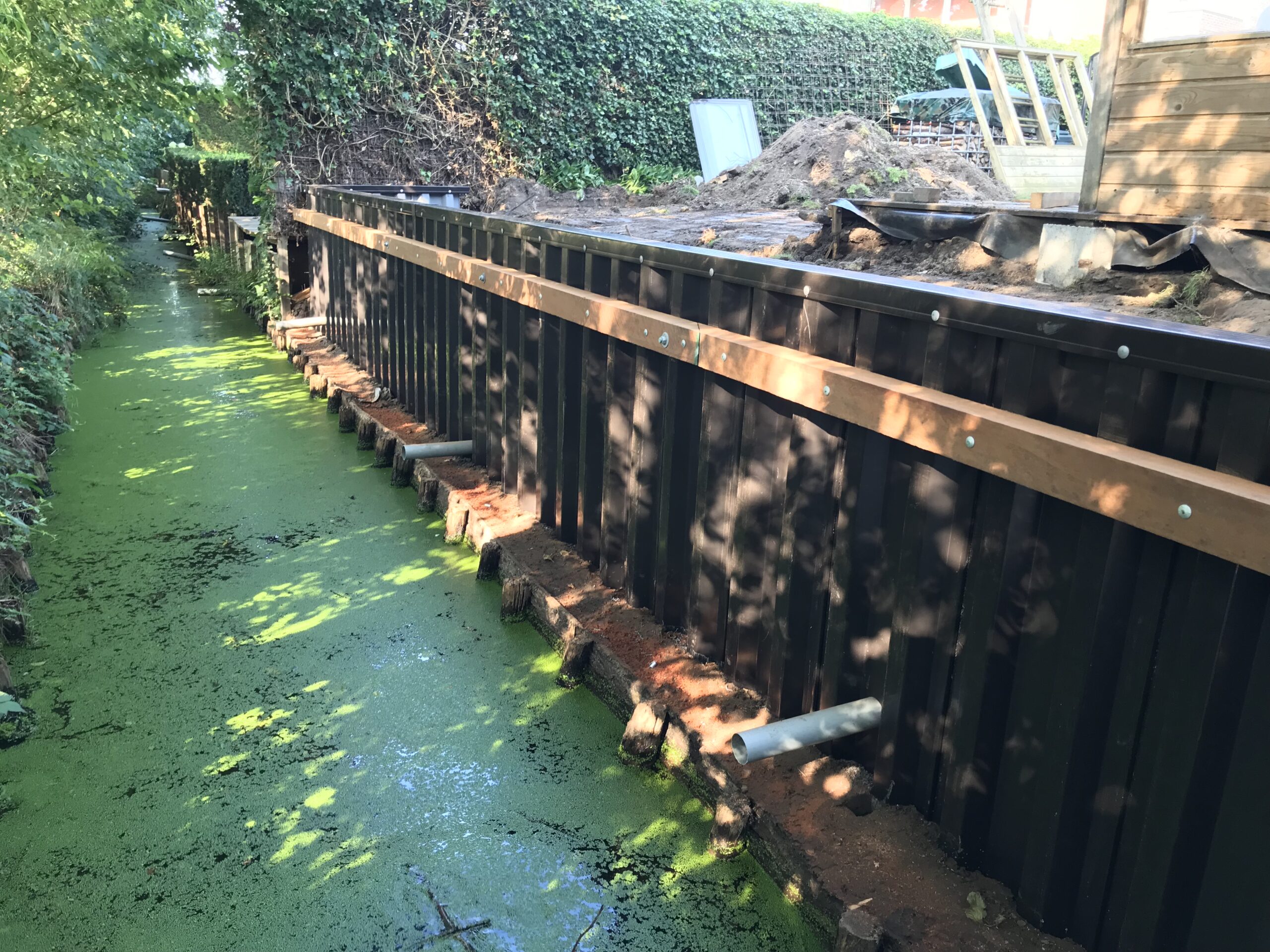 In Dokkum hebben we een tuin voorzien van nieuwe kunststof walbeschoeiing. De plek was niet makkelijk bereikbaar, maar toch hebben we de beschoeiing kaarsrecht kunnen plaatsen langs de waterkant.