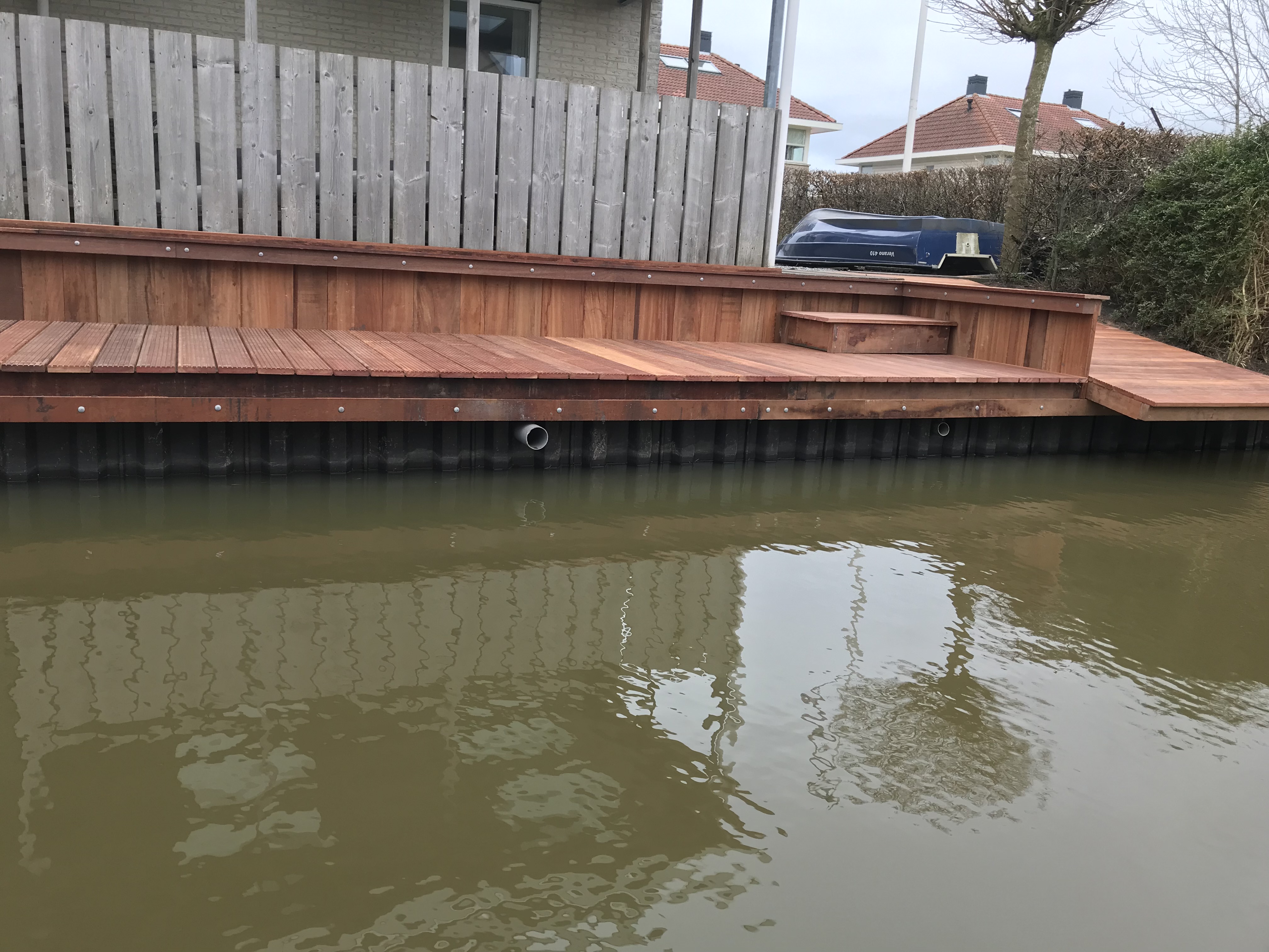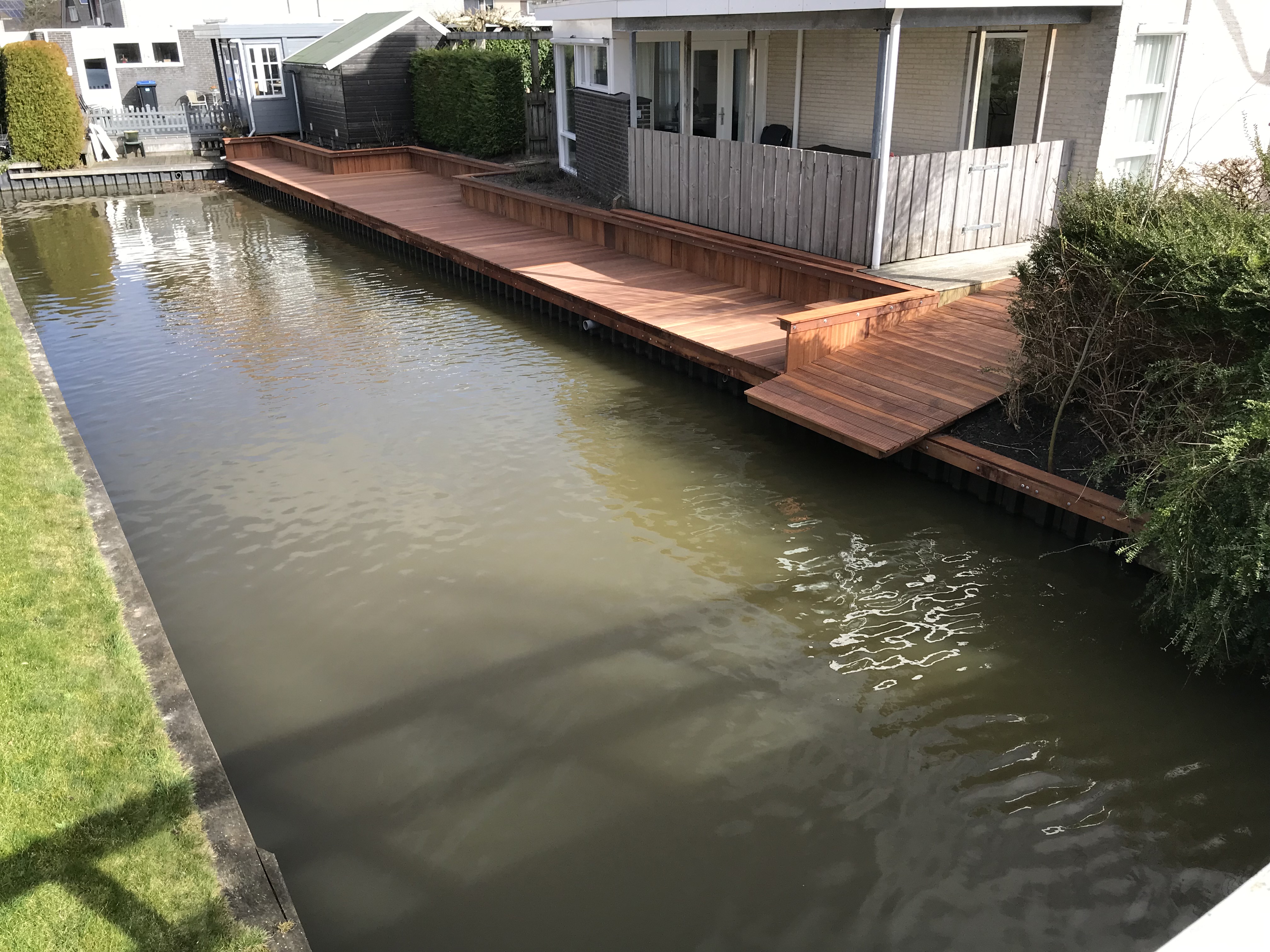 In Drachten hebben wij dit project afgerond waarbij de bestaande oeverconstructie volledig is vervangen door duurzame kunststof walbeschoeiing. Om het geheel praktisch en stijlvol te maken, is er een ruim vlonderterras geïntegreerd langs het water. Dit biedt de bewoners niet alleen een stevige oeverbescherming, maar ook een comfortabele plek om te genieten van de tuin en het water.