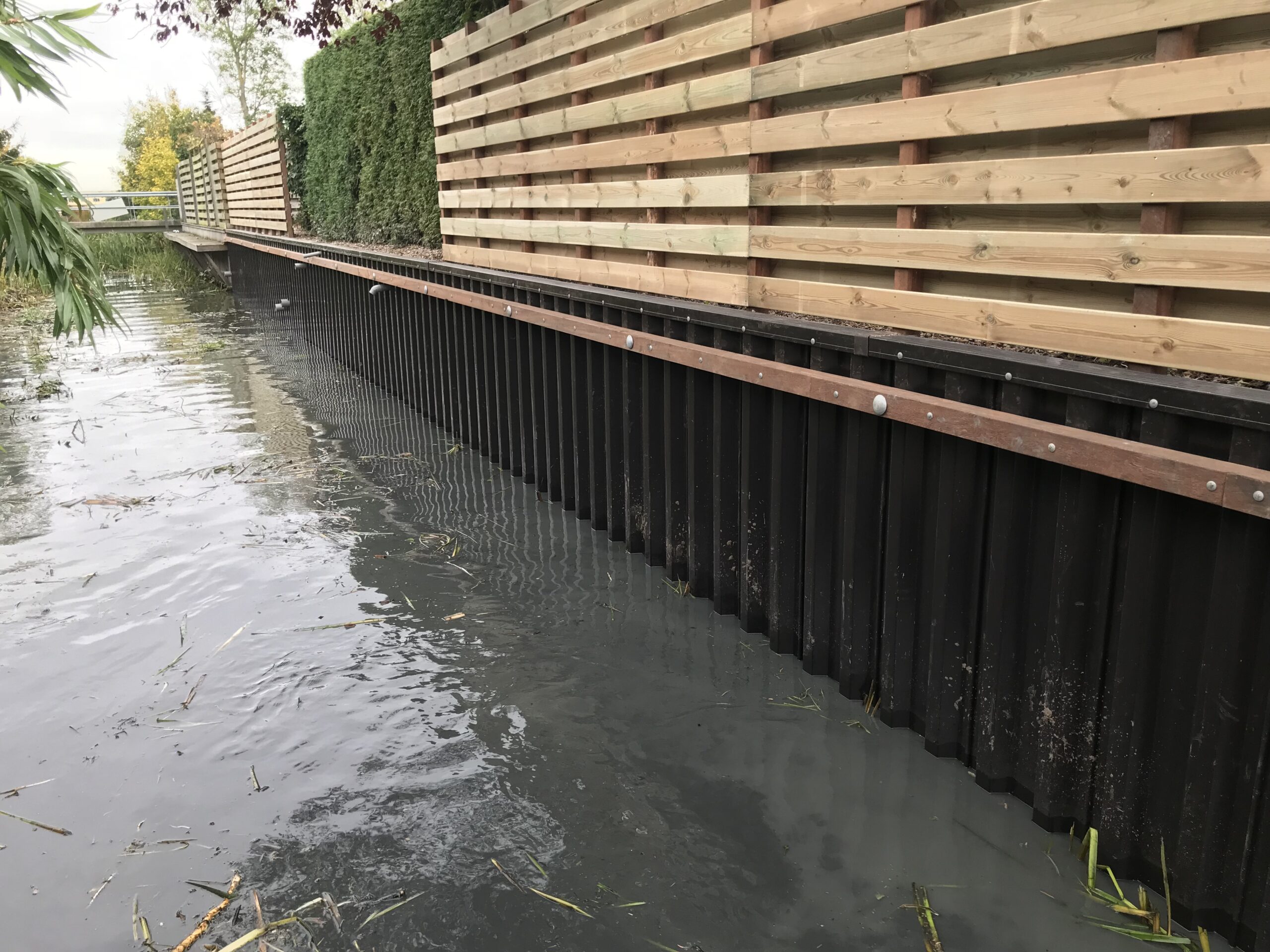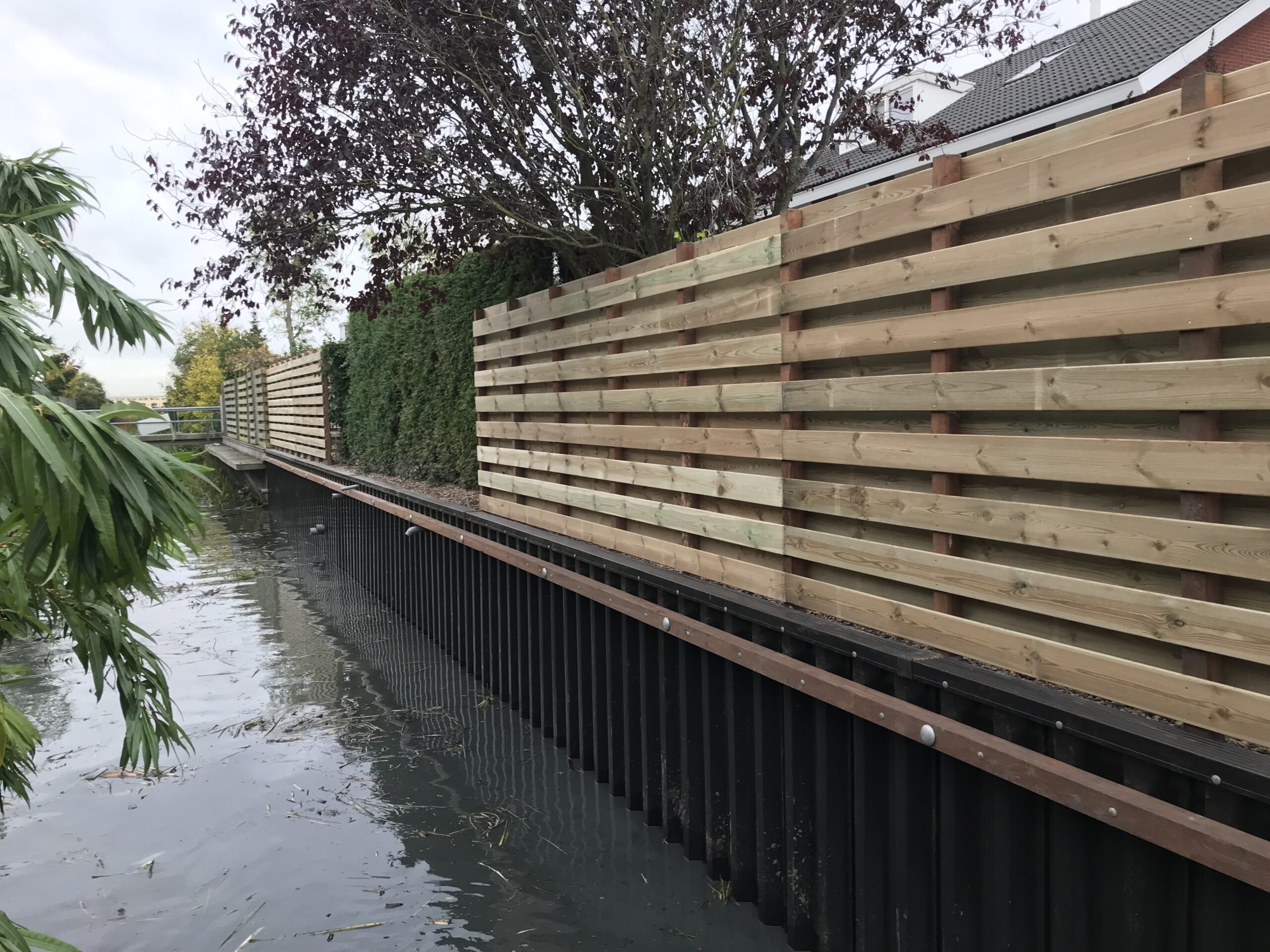 In Hoogkerk hebben we deze strakke kunststof walbeschoeiing geplaatst. Voor extra stevigheid en een mooie afwerking is er gebruikgemaakt van hardhouten gordingen. Achter de beschoeiing is een robuust houten scherm geplaatst, wat zorgt voor meer privacy én een nette uitstraling. Dankzij het duurzame kunststof gaat deze walbeschoeiing jarenlang mee zonder veel onderhoud.