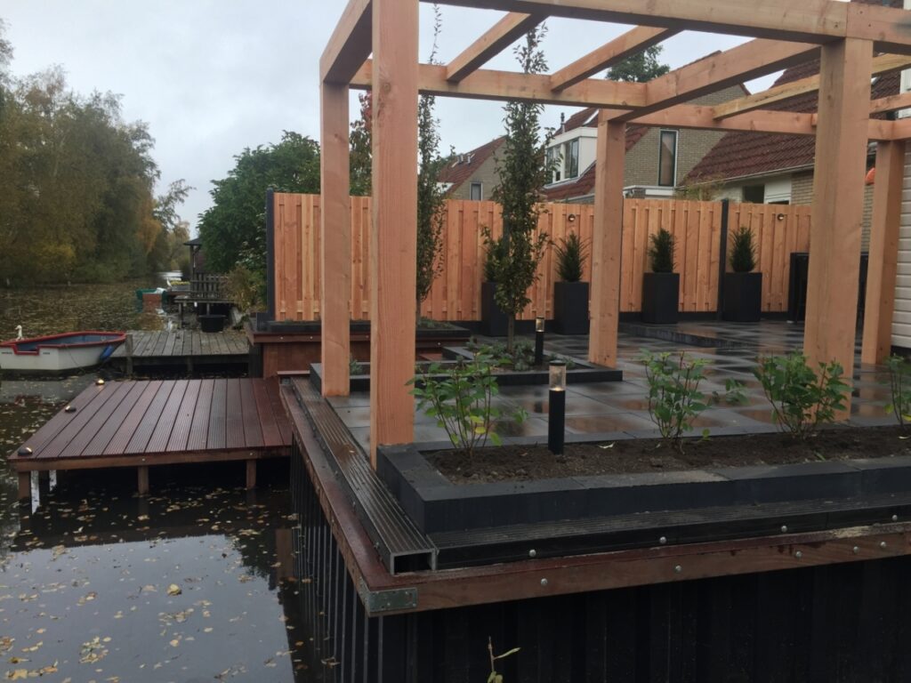 Voor een tevreden klant in Grou hebben wij 20 meter kunststof walbeschoeiing geplaatst. De tuin was toe aan een grondige vernieuwing en daarom hebben we ook de volledige tuinaanleg aangepakt. Hierbij zijn duurzame materialen toegepast, waaronder hardhout, kunststof en natuursteen. Met de ingebouwde ledverlichting kan de klant nu ook in de avonduren volop genieten van de tuin aan het water.