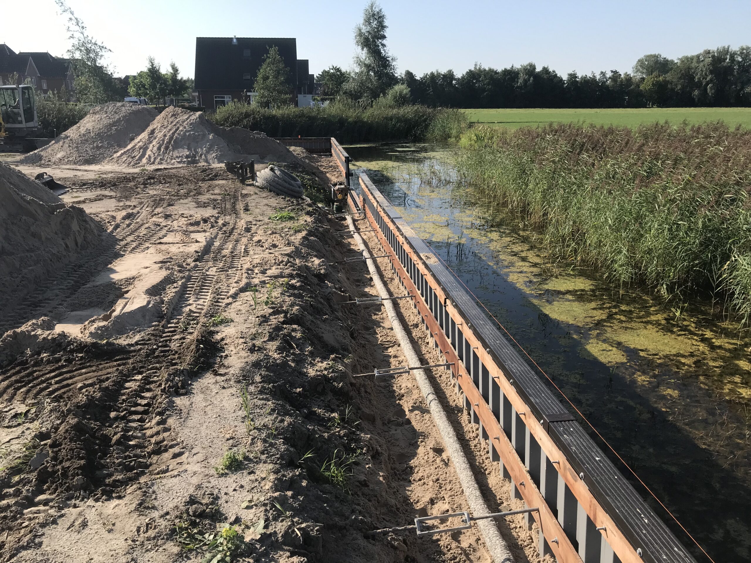 In een nieuwbouwwijk in Wierum hebben we 80 meter kunststof walbeschoeiing van ProLock geplaatst. Door samen in te kopen met de buren konden we de kunststof walbeschoeiing in Wierum voor een scherpe prijs realiseren.
