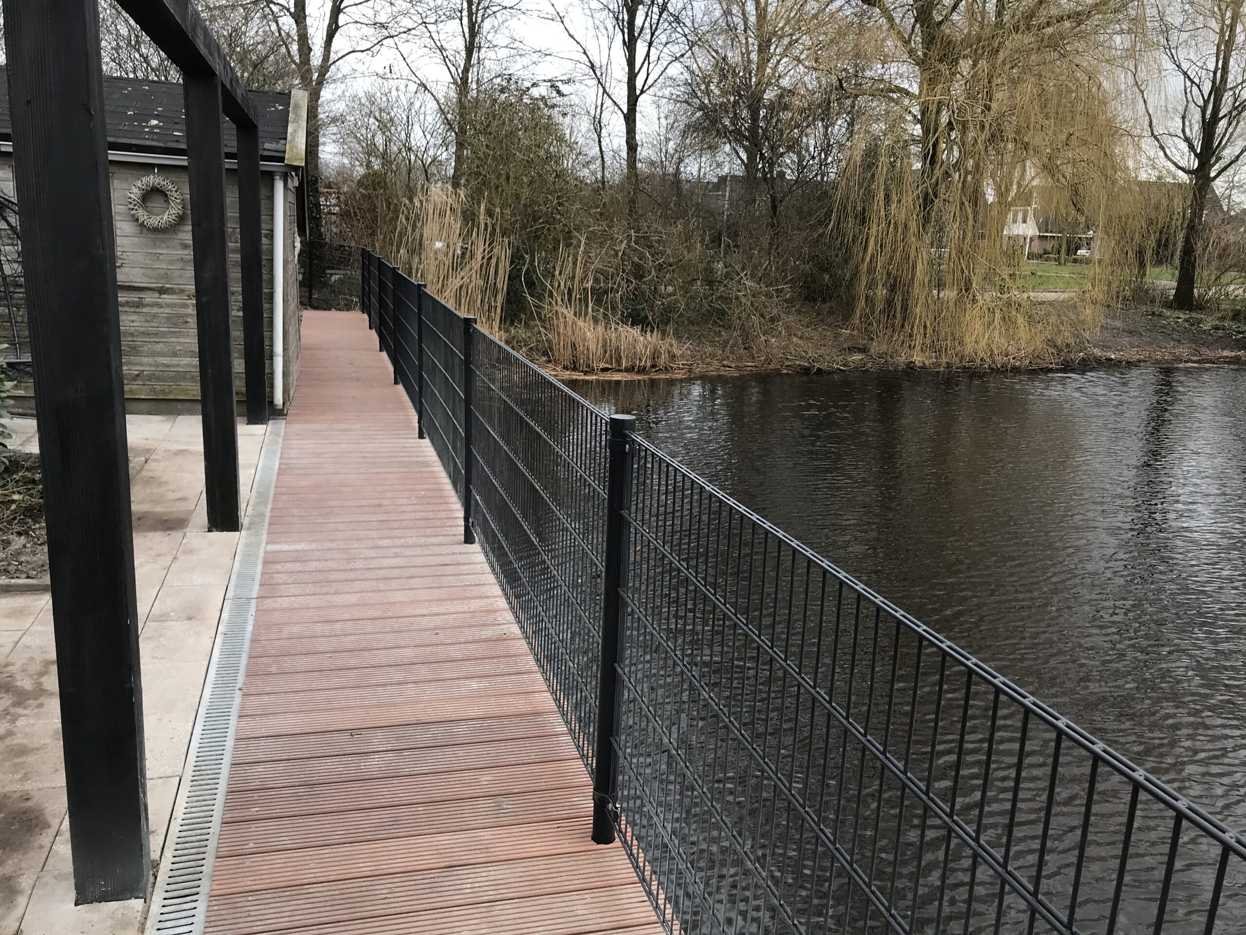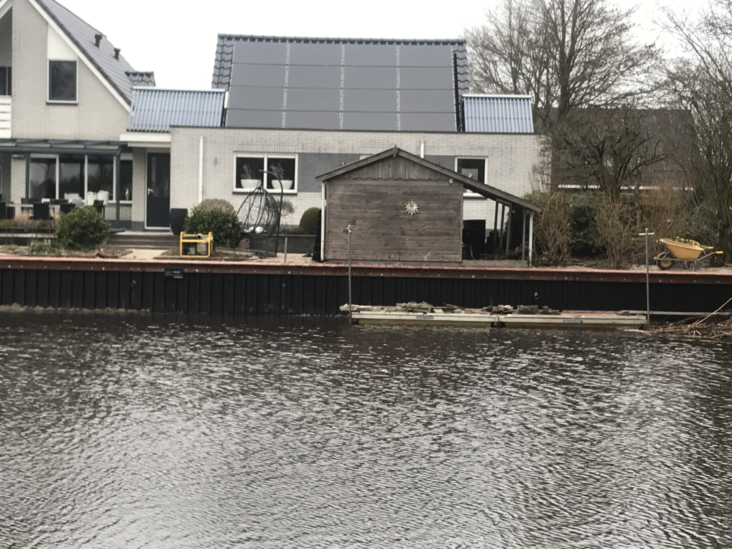 In Zuidhorn hebben we een kunststof walbeschoeiing geplaatst, met een hardhouten vlonder erop. Het oude hekwerk moest eerst los, dat hebben we netjes weggehaald en daarna weer goed teruggezet. De keuze voor kunststof walbeschoeiing in Zuidhorn was simpel: het gaat lang mee, je hebt er weinig omkijken naar en het ziet er strak uit langs het water. De vlonder zorgt voor een fijne plek om te zitten of even een hengel uit te gooien. De klant wilde vooral dat het onderhoudsvrij zou zijn en dat is gelukt. In een dorp als Zuidhorn is wonen aan het water mooi, en met een kunststof walbeschoeiing van Kunststofwalbeschoeiing.nl blijft dat ook zo.