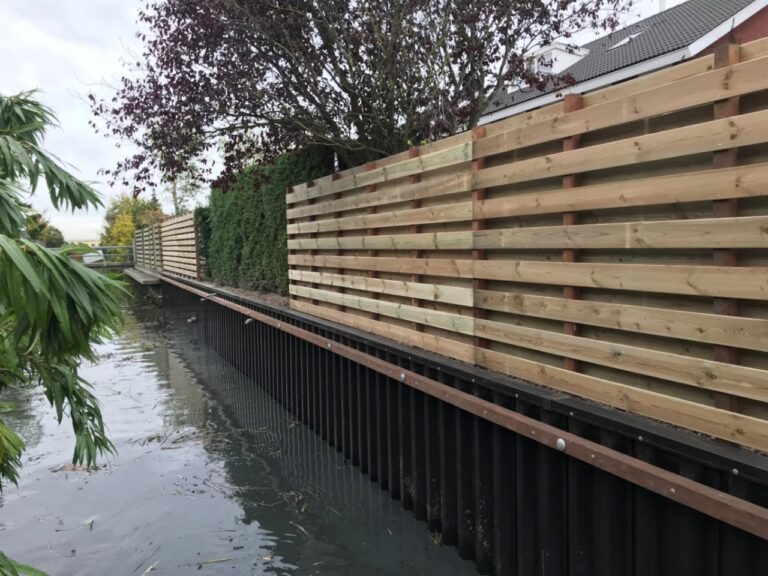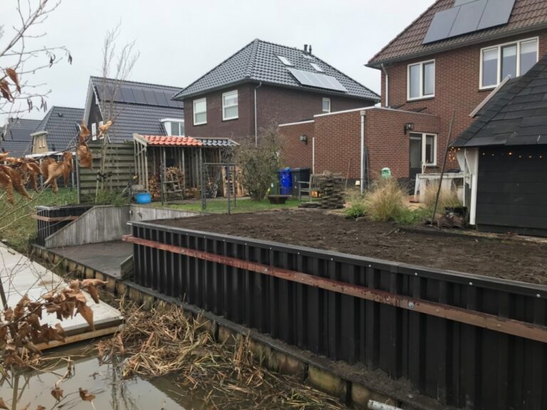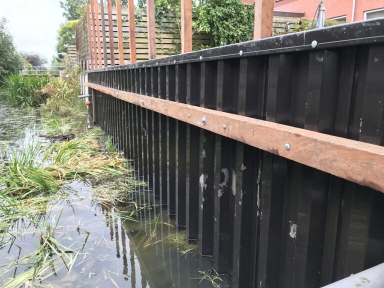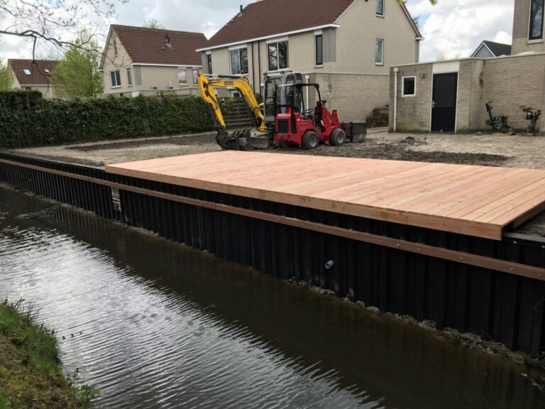 - Kunststof walbeschoeiing met hardhouten steiger Grou