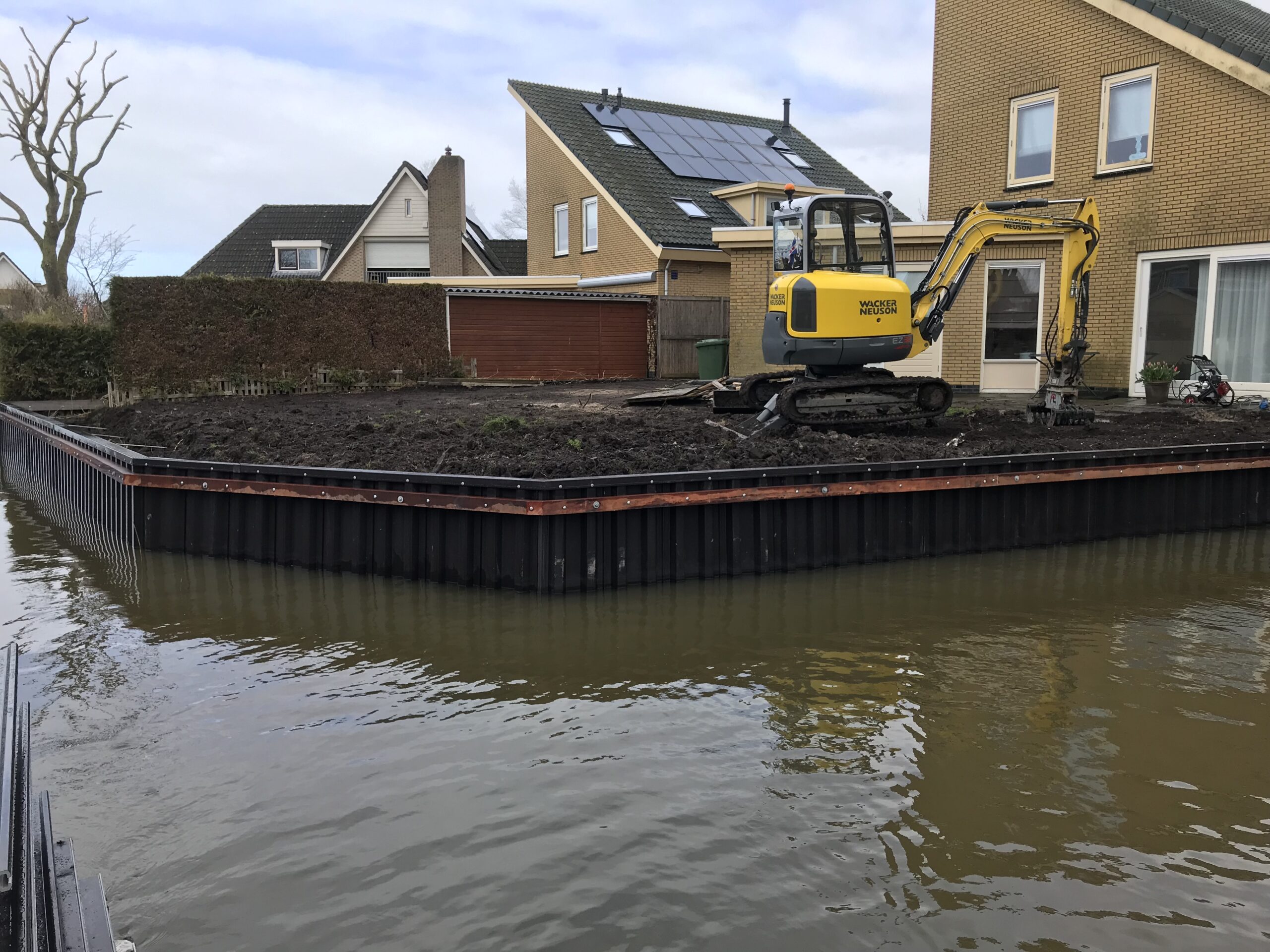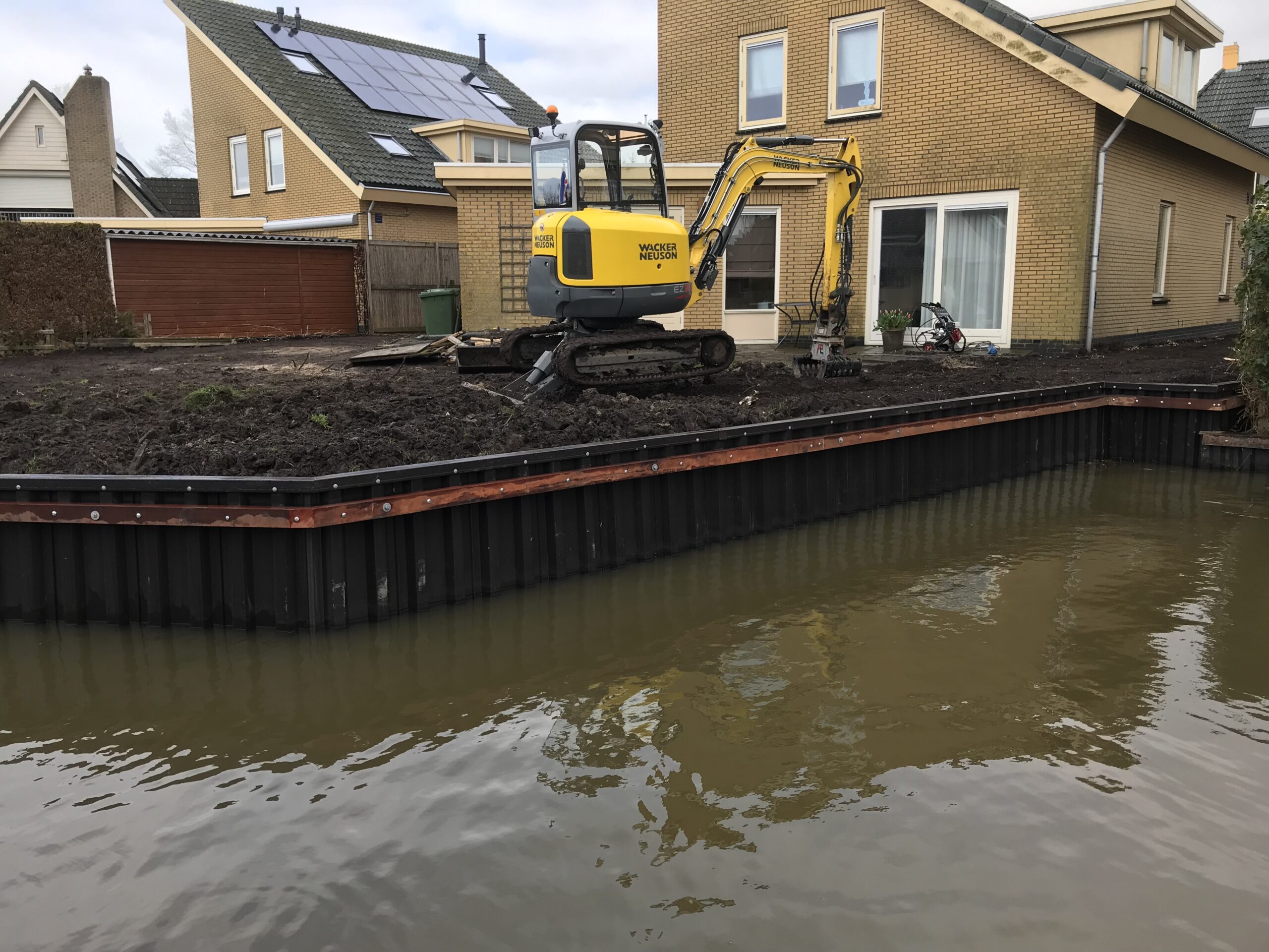 In Langweer hebben we een tuin voorzien van nieuwe kunststof walbeschoeiing. We hebben de tuin meteen opgehoogd zodat alles weer strak en gelijk ligt. Omdat er jonge kinderen wonen, hebben we langs de waterkant een hekwerk geplaatst voor extra veiligheid.