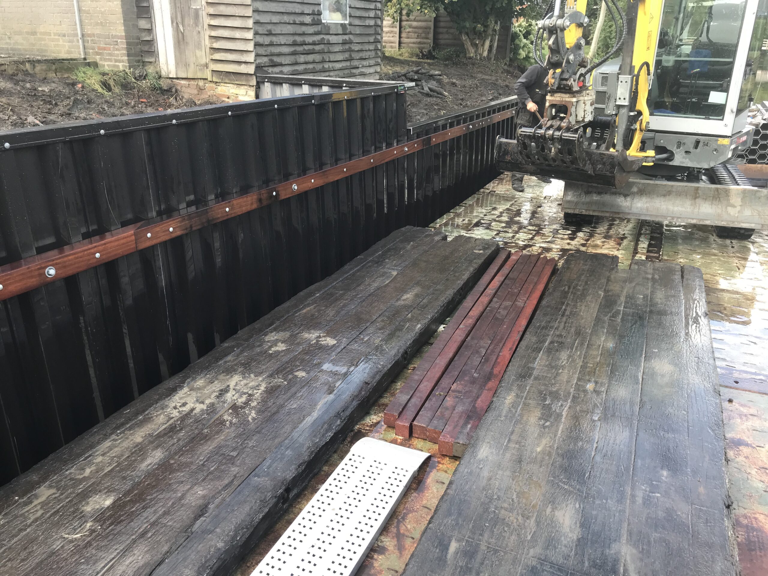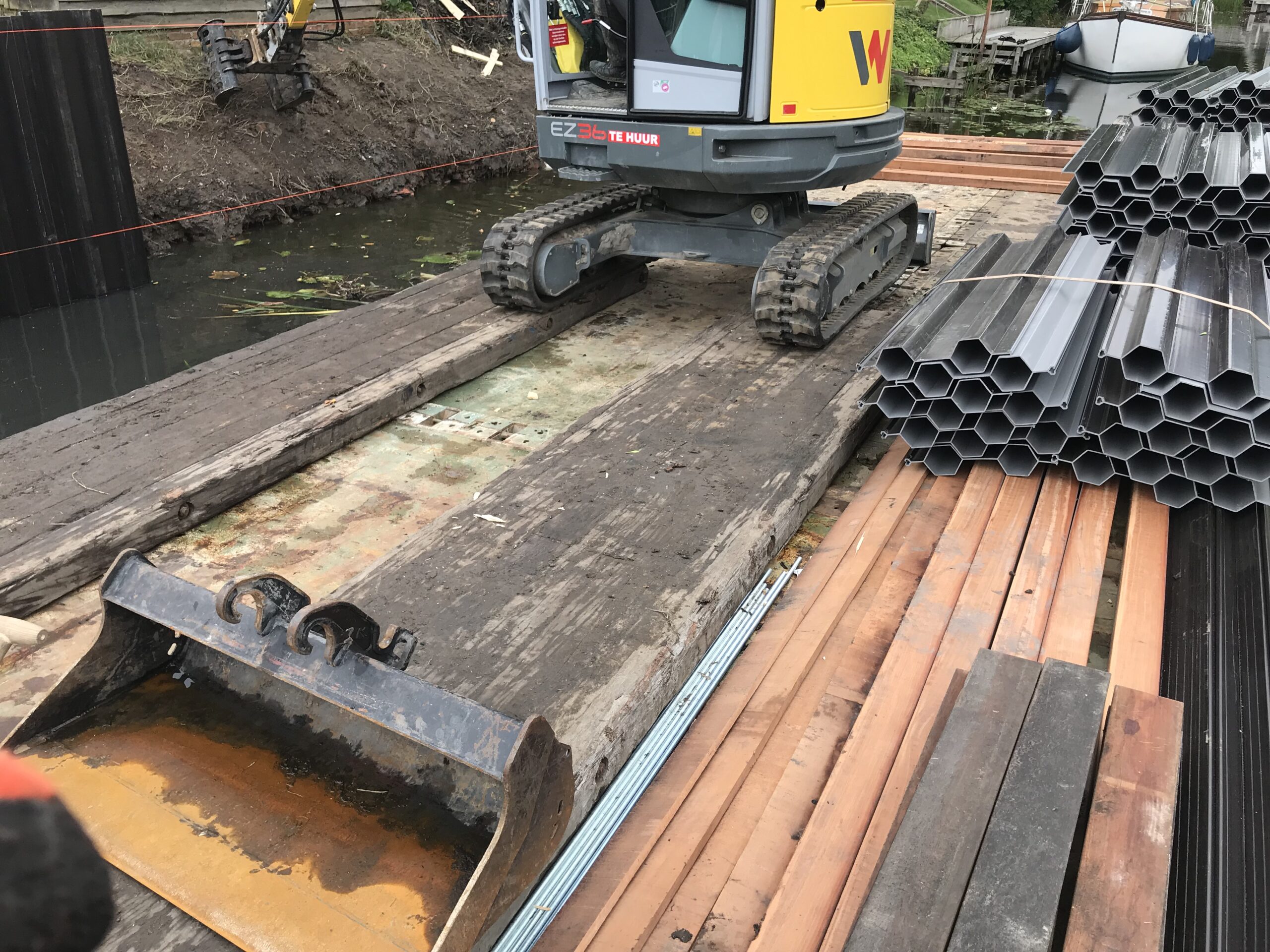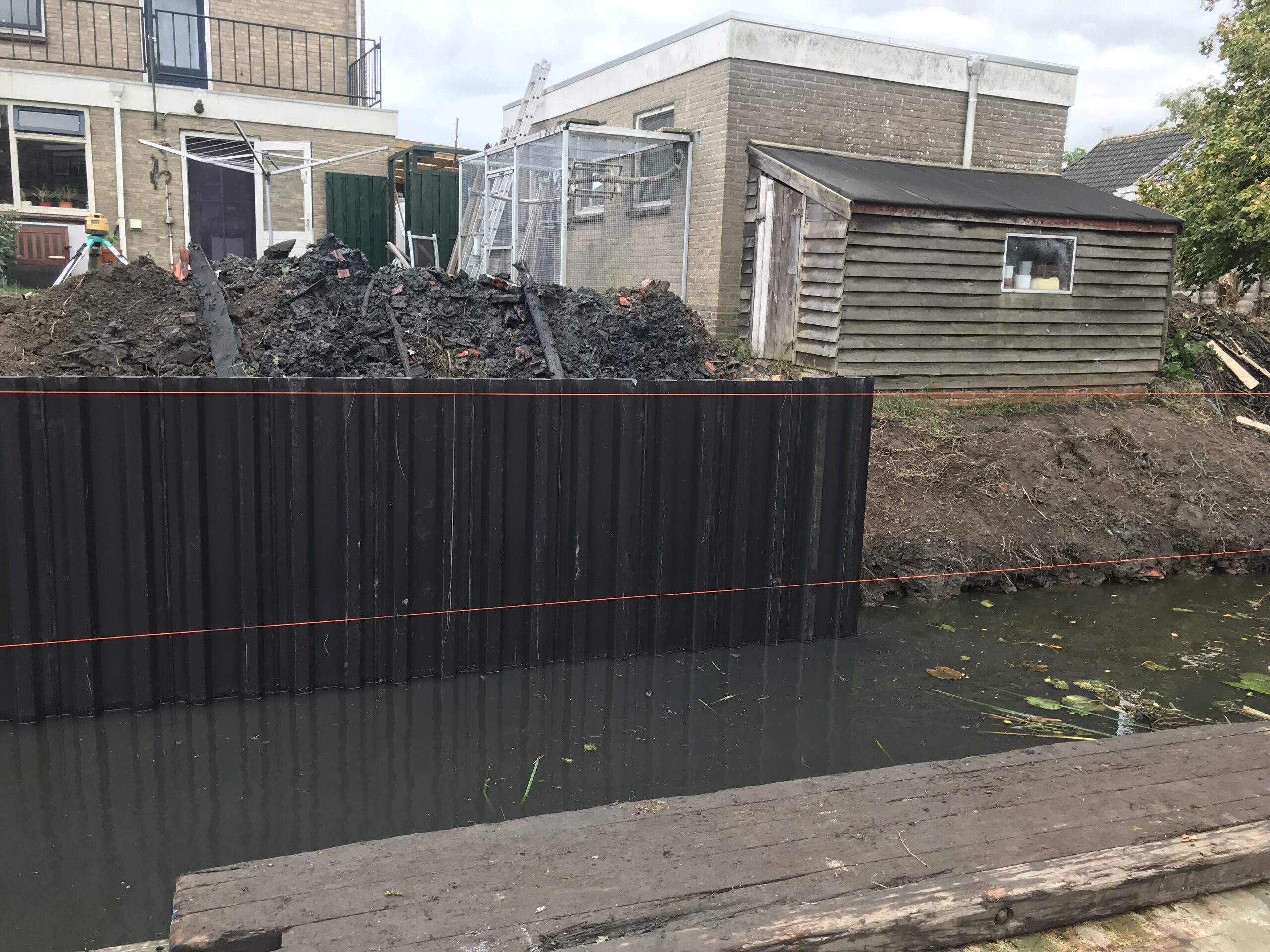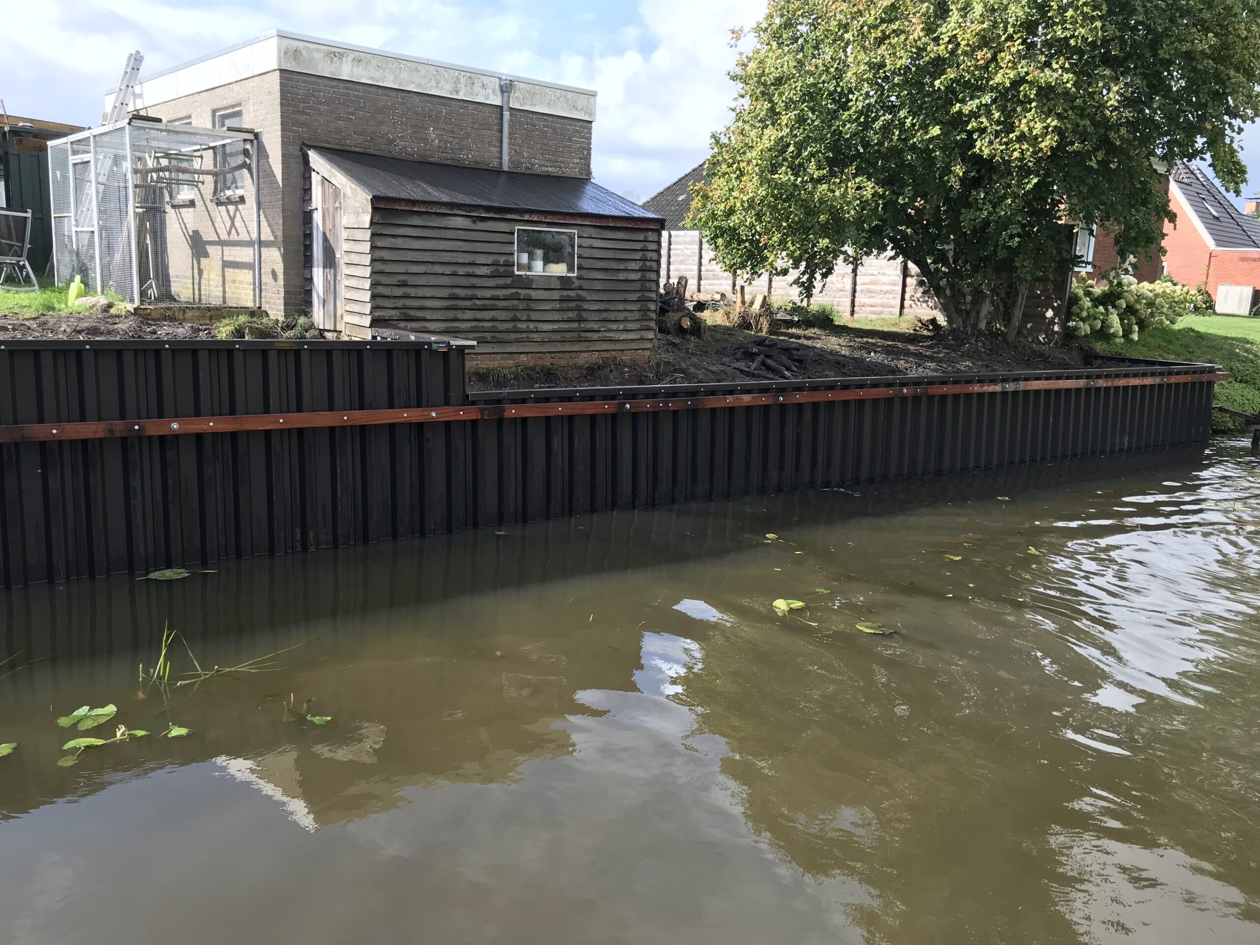 In Workum hebben we een tuin langs de waterkant voorzien van nieuwe kunststof walbeschoeiing. De tuin ligt aan een doorgaande vaarroute, waardoor een deel van de oever was weggespoeld door de golfslag van boten.